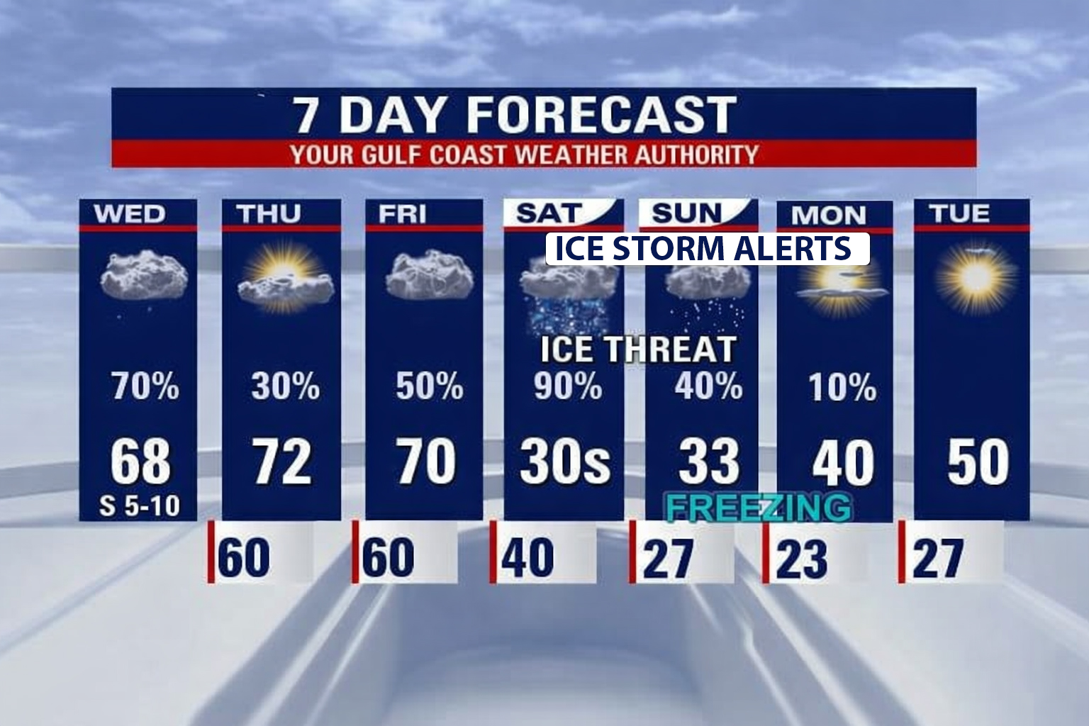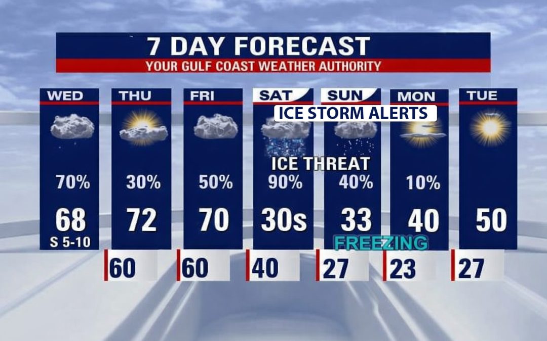 • Vigilancia de tormenta invernal, en efecto desde la mañana del sábado hasta la tarde del domingo para varios condados incluyendo Harris, Fort Bend y Montgomery, entre otros.