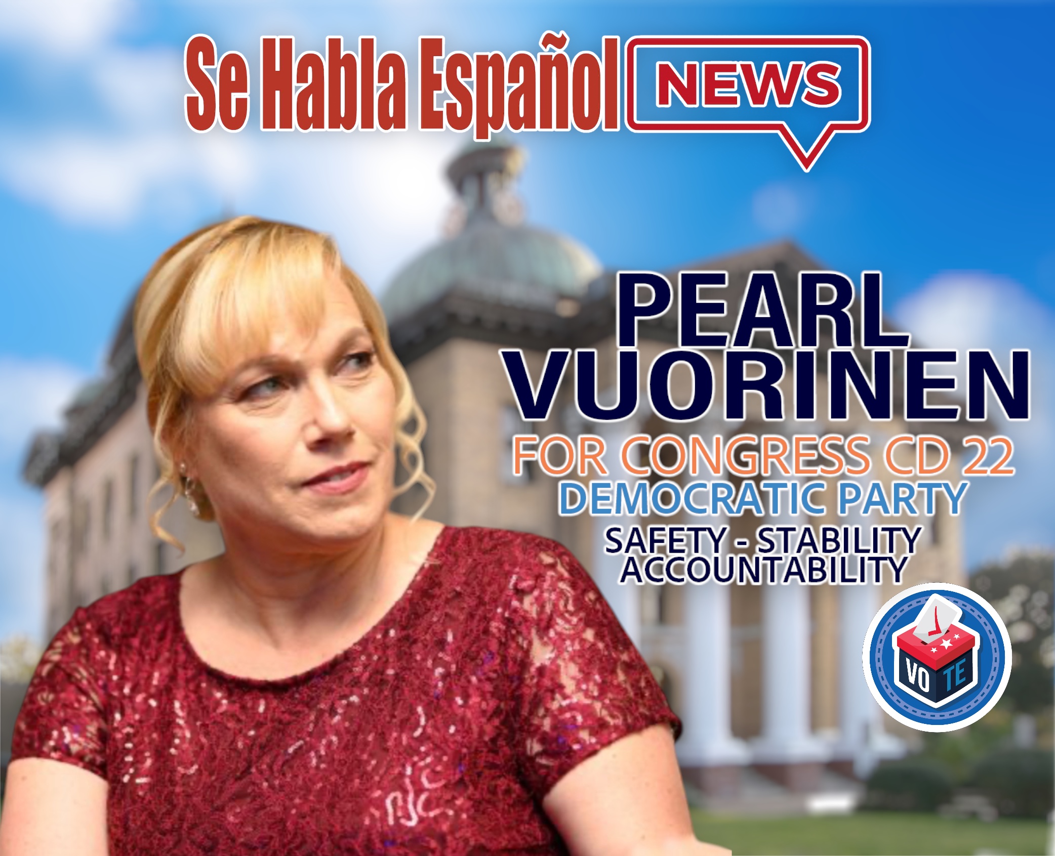 En el arranque del ciclo electoral de 2026, la demócrata Pearl Vuorinen entra a la contienda por el Distrito Congresional 22 de Texas, un distrito que incluye zonas de Fort Bend y Brazoria (y áreas del entorno metropolitano de Houston).